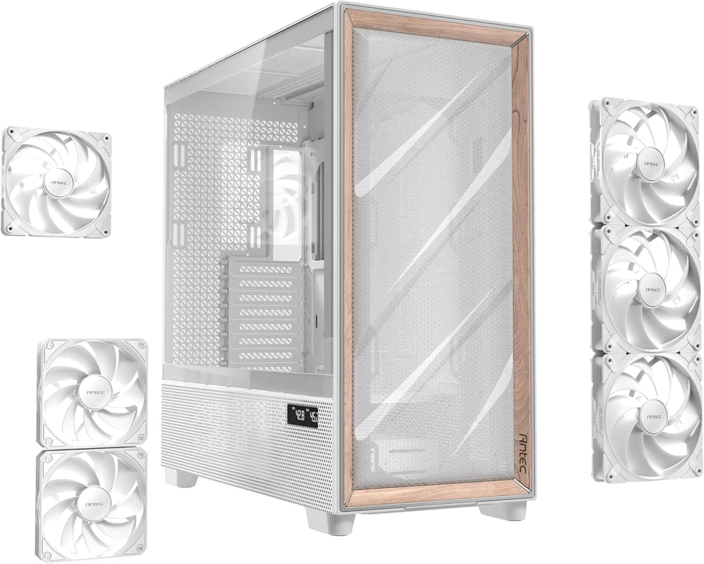 The Antec FLUX PRO redefines full tower PC cases with its F-LUX platform, delivering exceptional airflow and luxurious design for demanding builds. Equipped with 6 high-performance PWM fans right out of the box, this chassis ensures optimal temperatures for your high-end components while its tempered glass and walnut wood elements add a touch of elegance to any setup. Whether you're assembling a gaming powerhouse or a professional workstation, the FLUX PRO combines innovation with reliability for seamless performance.