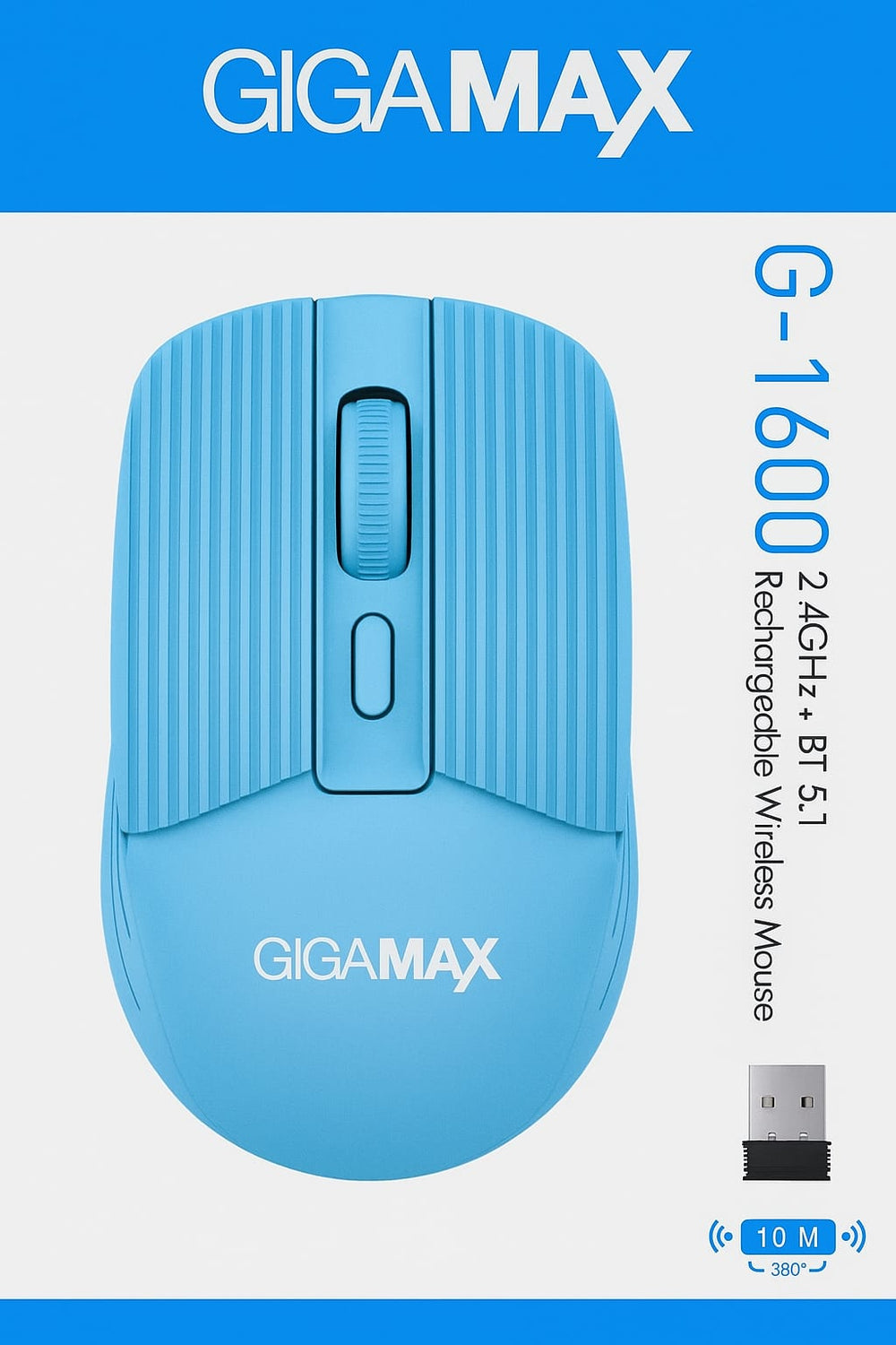 The Gigamax G-1300 wireless mouse brings you a smart, flexible pointing solution with dual-mode connectivity (Bluetooth & 2.4 GHz RF) plus wired USB option. With a 1600 DPI optical sensor, rechargeable battery and silent button design, it’s built for both flexible work setups and quiet home use. Whether you’re switching between laptop, tablet or desktop, the G-1300 has the versatility you need.