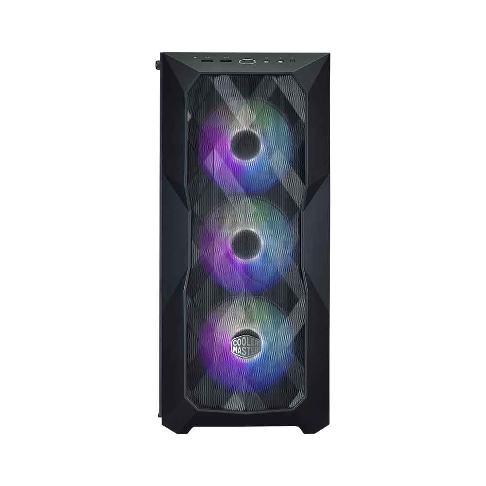 Transform your gaming setup with the Cooler Master MasterBox TD500 Mesh V2, a mid-tower ATX case engineered for exceptional cooling and visual appeal. Its innovative polygonal FineMesh front panel, paired with three pre-installed CF120 ARGB fans, delivers unrestricted airflow while creating dynamic RGB lighting that shifts with viewing angles. Available in sleek black or white variants, this chassis supports a wide range of components for effortless customization and future-proofing.